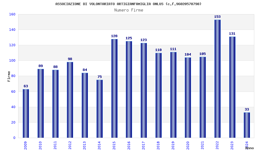 | Anno | Firme | Importi | Media | Naz. | Reg. | Prov. | Comu. |