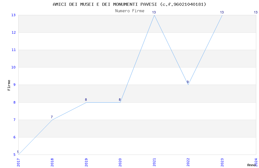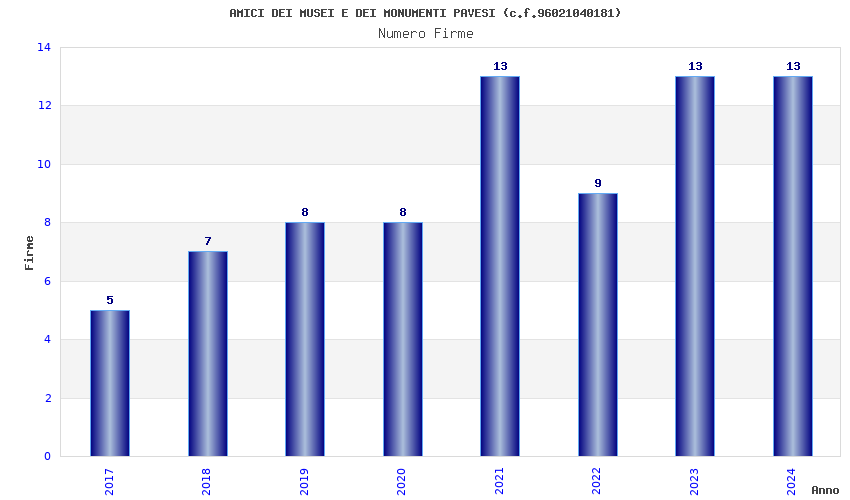 | Anno | Firme | Importi | Media | Naz. | Reg. | Prov. | Comu. |