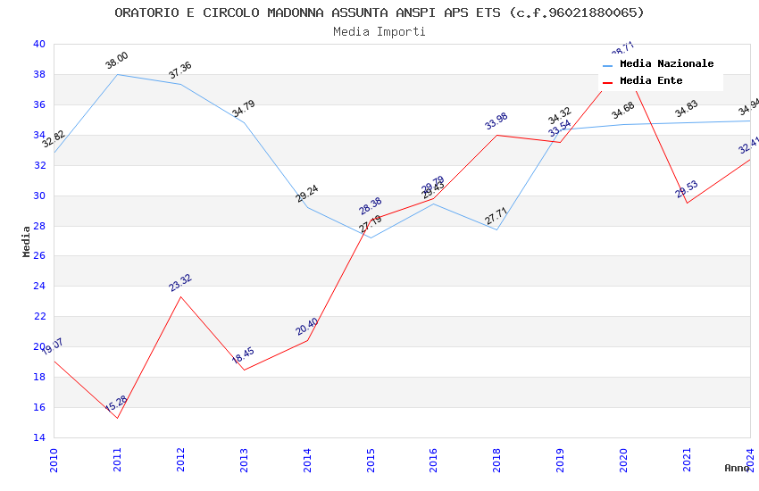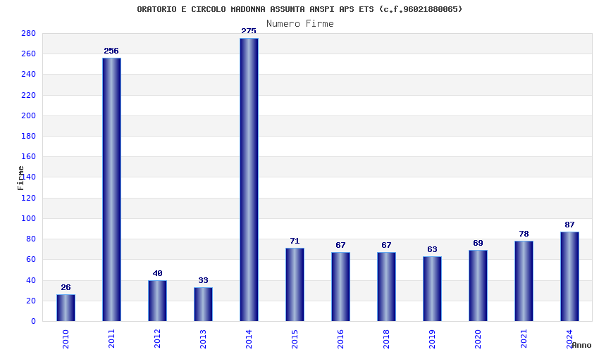 | Anno | Firme | Importi | Media | Naz. | Reg. | Prov. | Comu. |