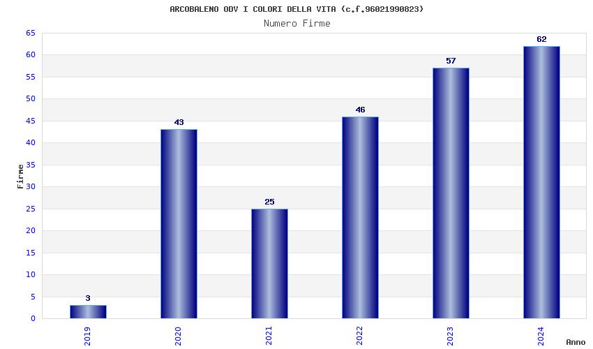 | Anno | Firme | Importi | Media | Naz. | Reg. | Prov. | Comu. |