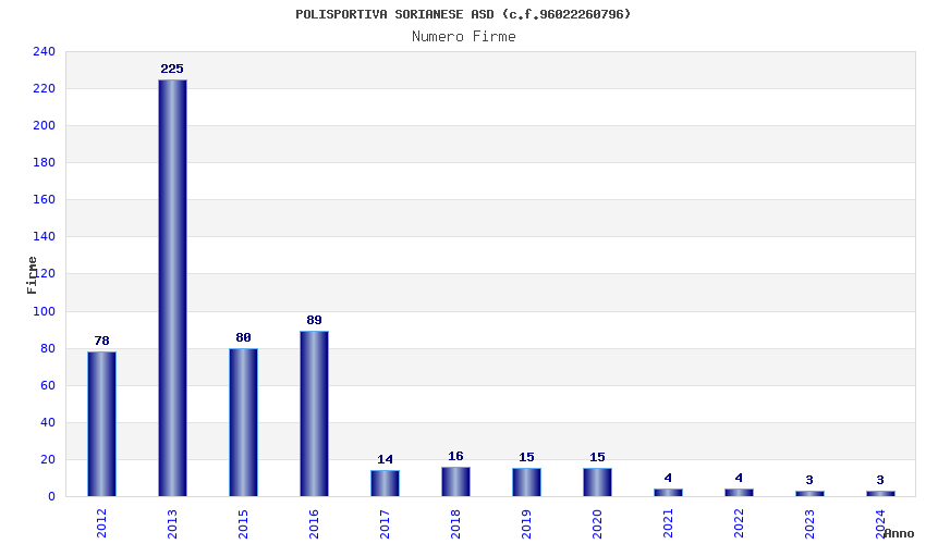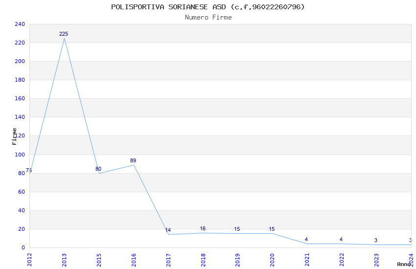 | 2013 | 225 | 3.004,63 | 13,35 | 13.650 | 262 | 14 | 1 |