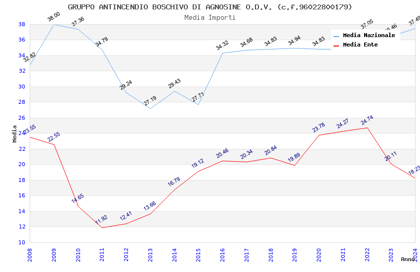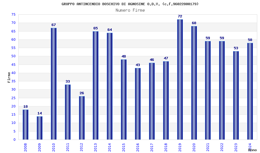| Anno | Firme | Importi | Media | Naz. | Reg. | Prov. | Comu. |
