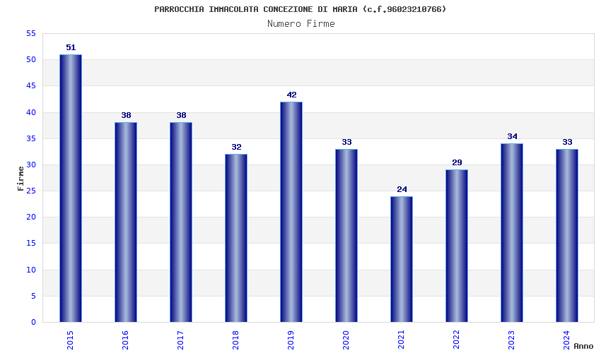 | Anno | Firme | Importi | Media | Naz. | Reg. | Prov. | Comu. |