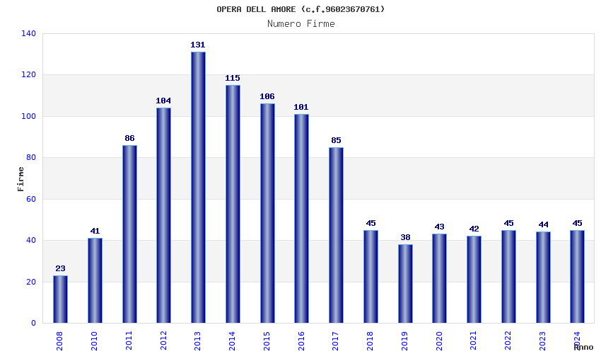 Anno Firme Importi Media Naz. Reg. Prov. Comu.