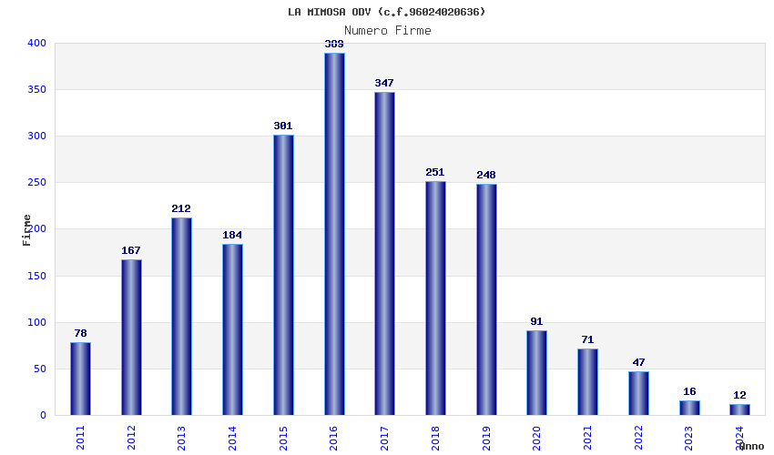 | Anno | Firme | Importi | Media | Naz. | Reg. | Prov. | Comu. |