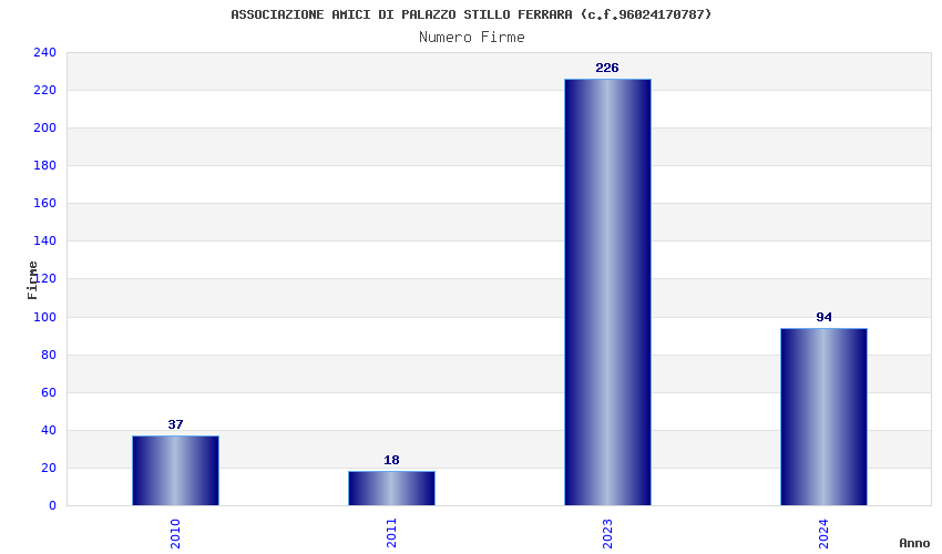 | Anno | Firme | Importi | Media | Naz. | Reg. | Prov. | Comu. |