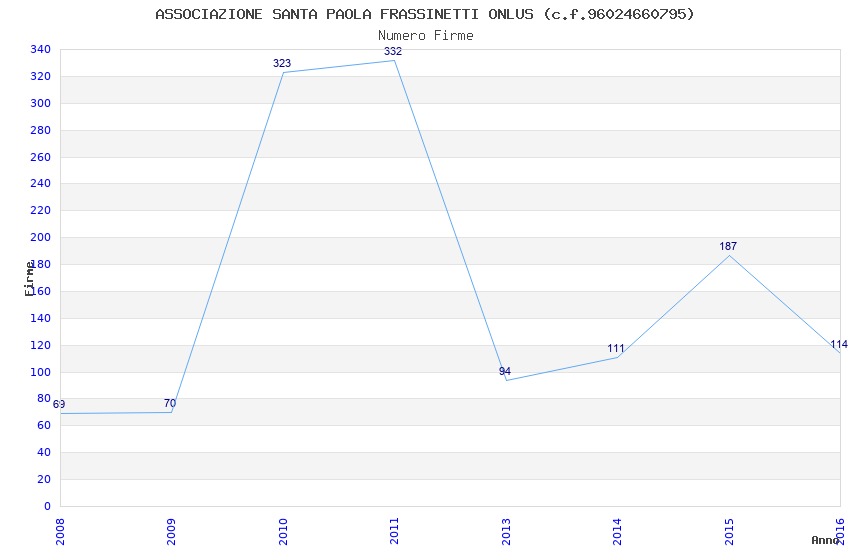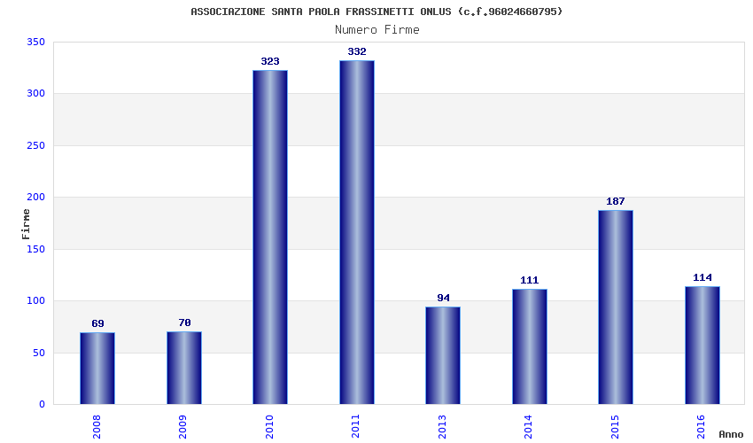 | Anno | Firme | Importi | Media | Naz. | Reg. | Prov. | Comu. |