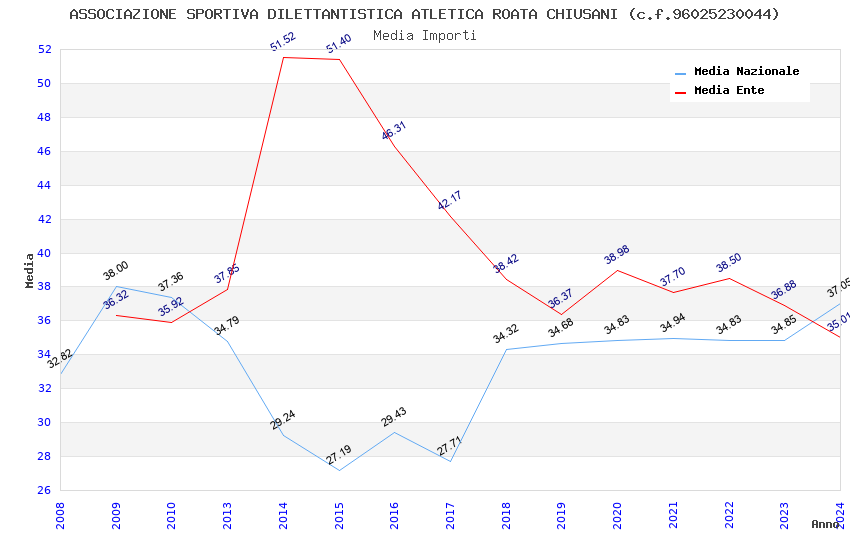 | Anno | Firme | Importi | Media | Naz. | Reg. | Prov. | Comu. |
