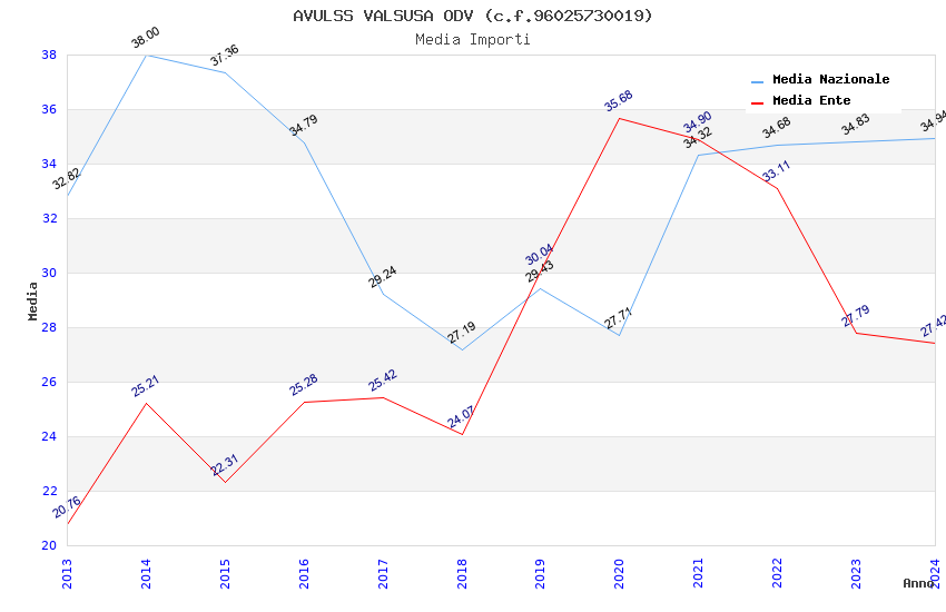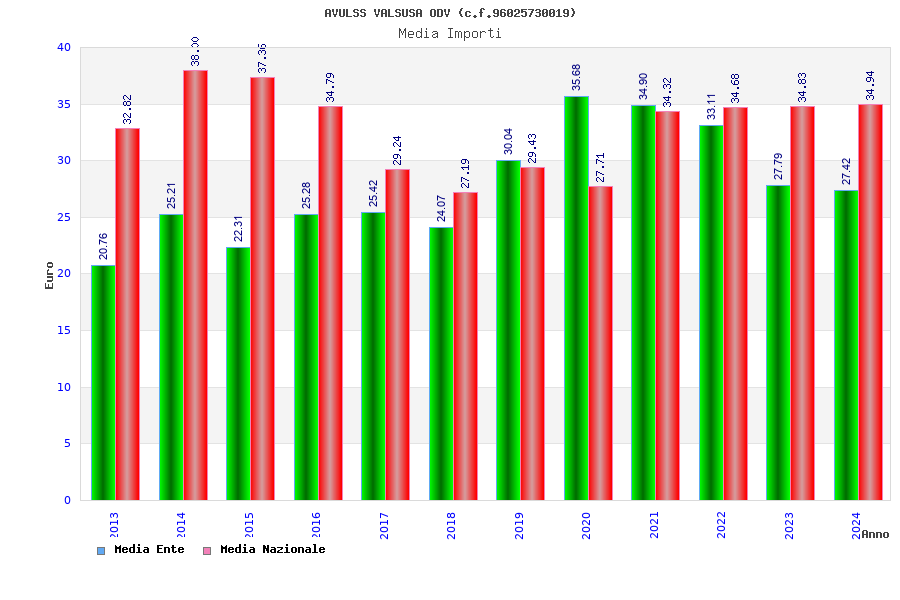 | Anno | Firme | Importi | Media | Naz. | Reg. | Prov. | Comu. |