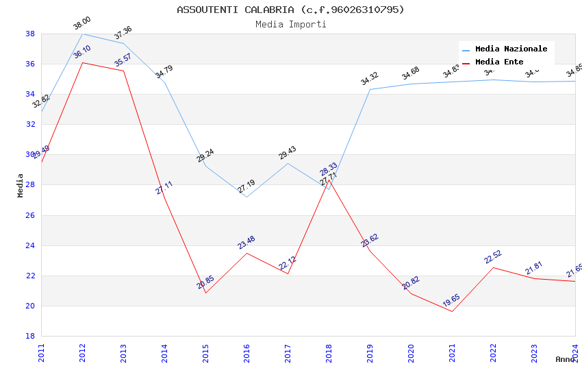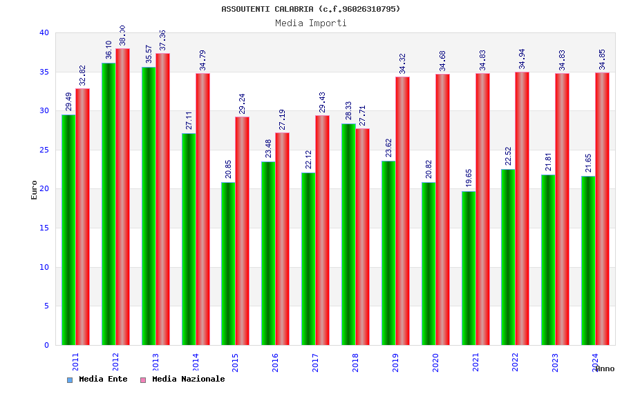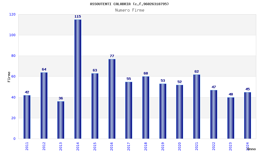 | Anno | Firme | Importi | Media | Naz. | Reg. | Prov. | Comu. |