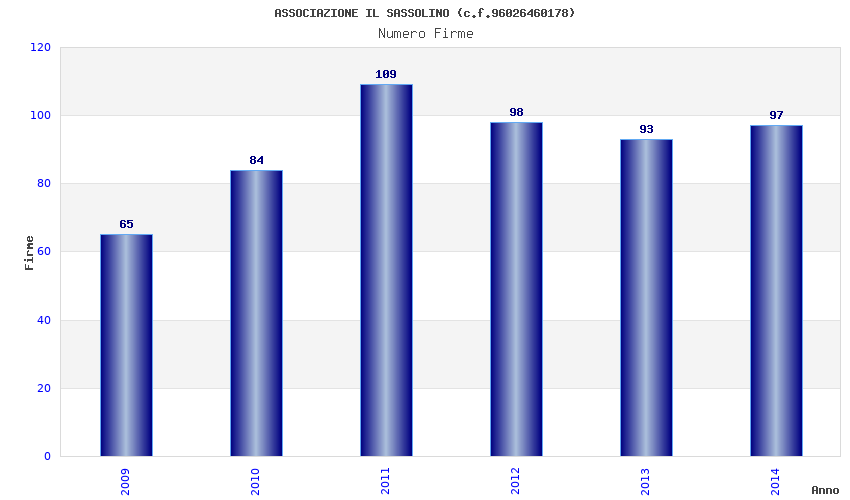| Anno | Firme | Importi | Media | Naz. | Reg. | Prov. | Comu. |
