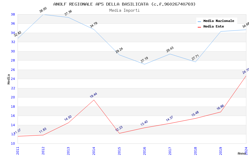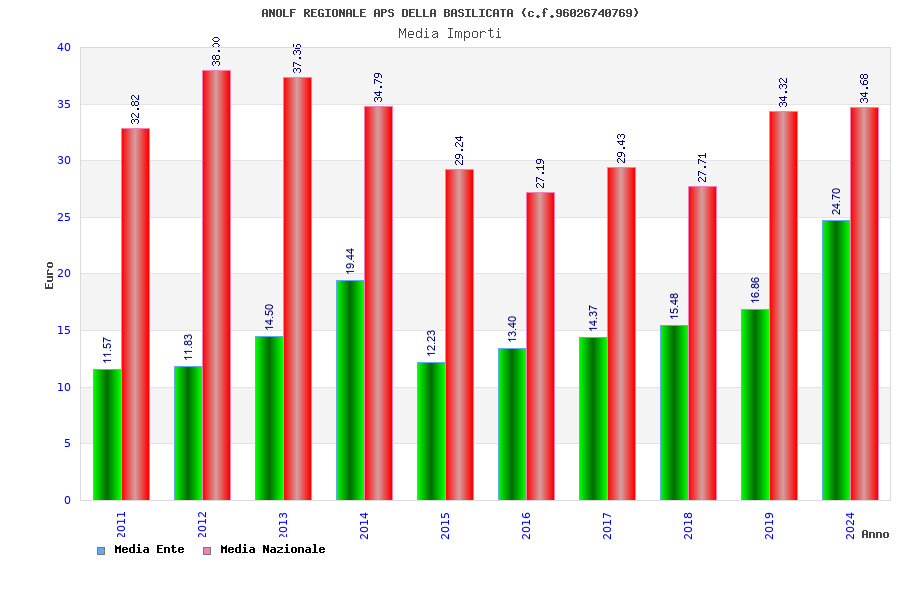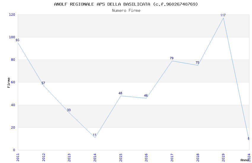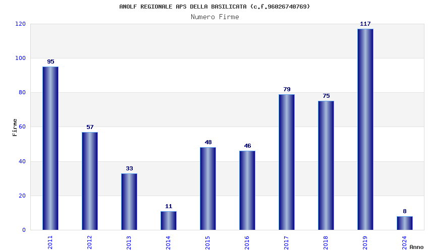 | Anno | Firme | Importi | Media | Naz. | Reg. | Prov. | Comu. |