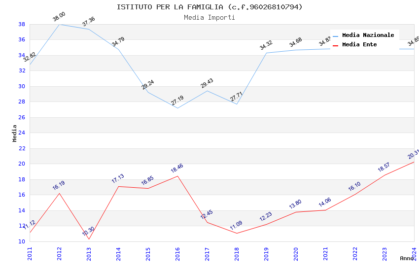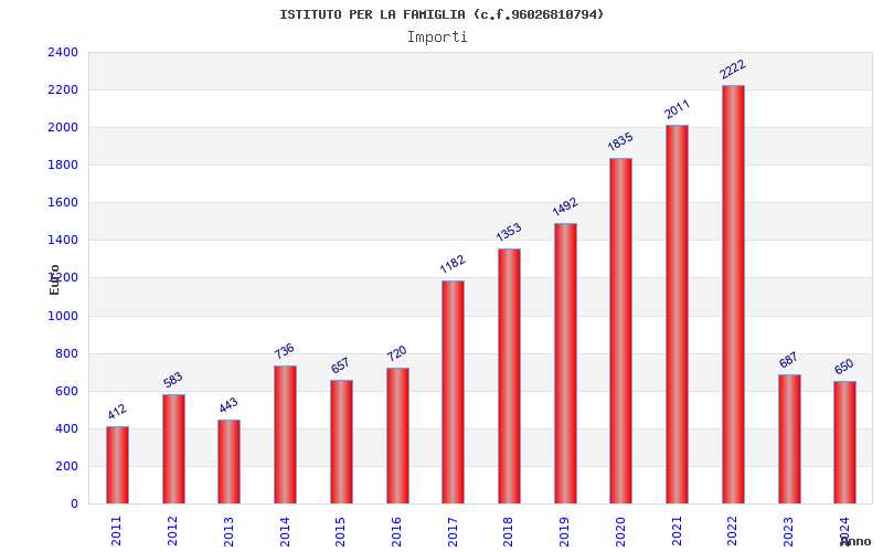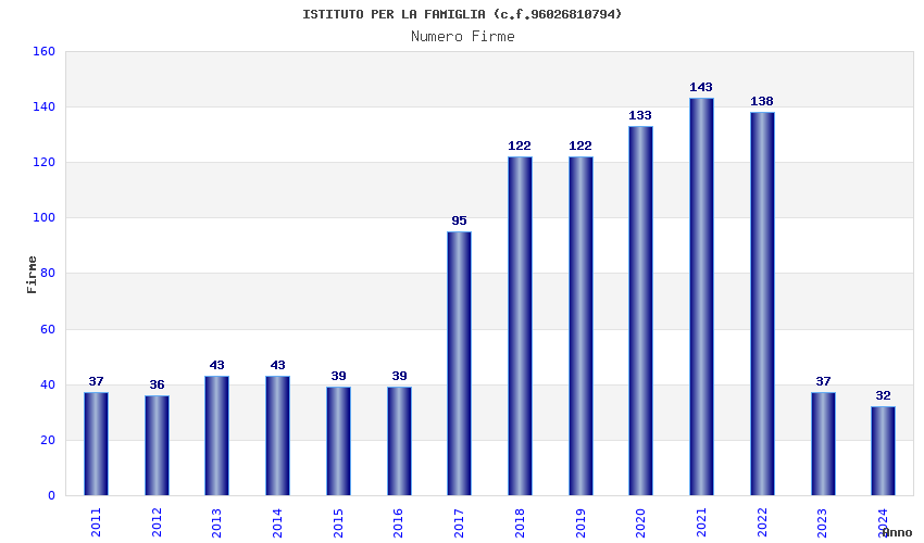 | Anno | Firme | Importi | Media | Naz. | Reg. | Prov. | Comu. |