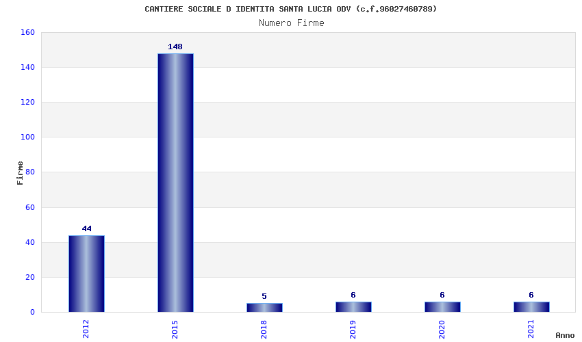| Anno | Firme | Importi | Media | Naz. | Reg. | Prov. | Comu. |