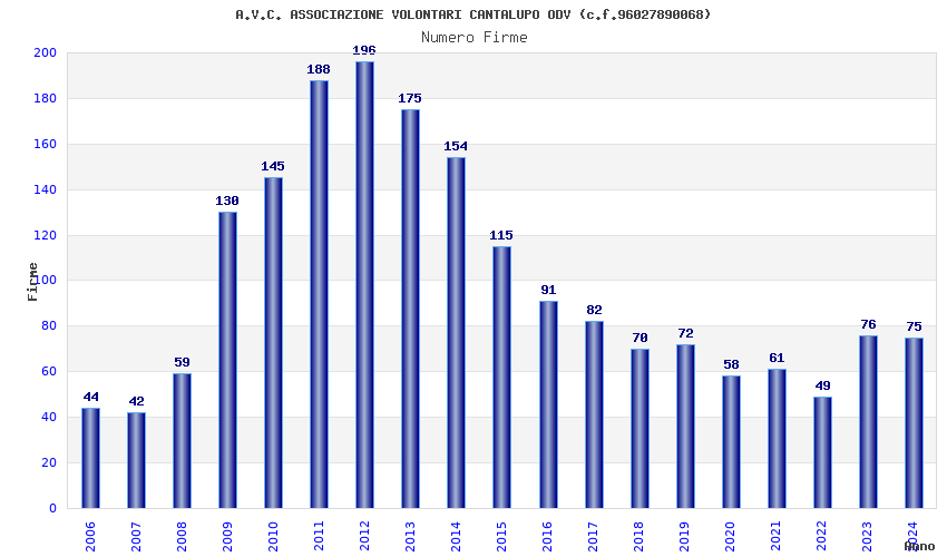 | Anno | Firme | Importi | Media | Naz. | Reg. | Prov. | Comu. |
