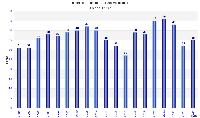 | Anno | Firme | Importi | Media | Naz. | Reg. | Prov. | Comu. |