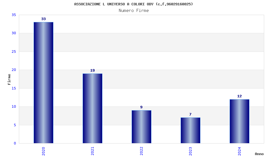 | Anno | Firme | Importi | Media | Naz. | Reg. | Prov. | Comu. |