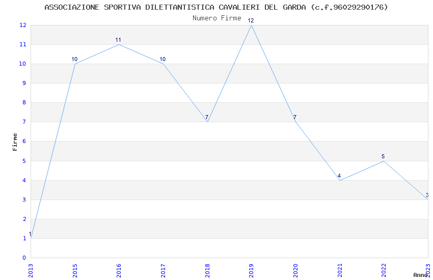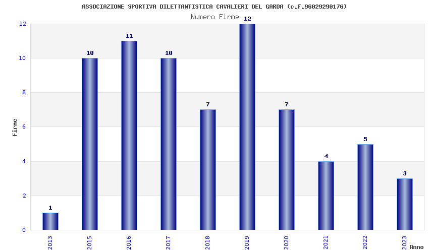 | Anno | Firme | Importi | Media | Naz. | Reg. | Prov. | Comu. |