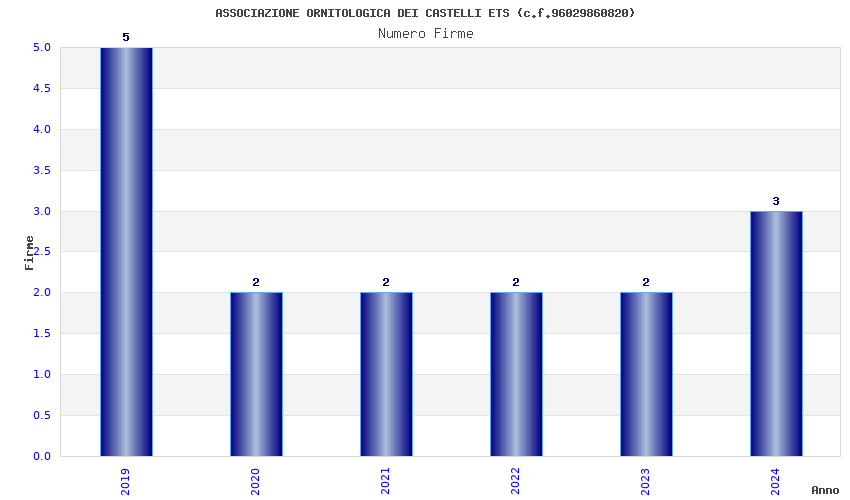 | Anno | Firme | Importi | Media | Naz. | Reg. | Prov. | Comu. |