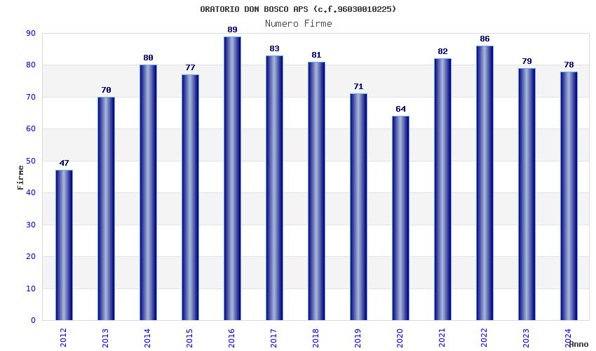 | Anno | Firme | Importi | Media | Naz. | Reg. | Prov. | Comu. |