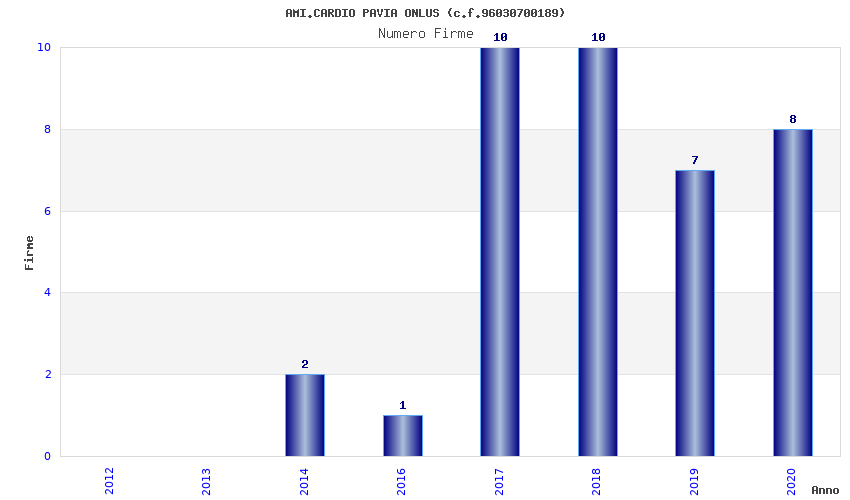 | Anno | Firme | Importi | Media | Naz. | Reg. | Prov. | Comu. |
