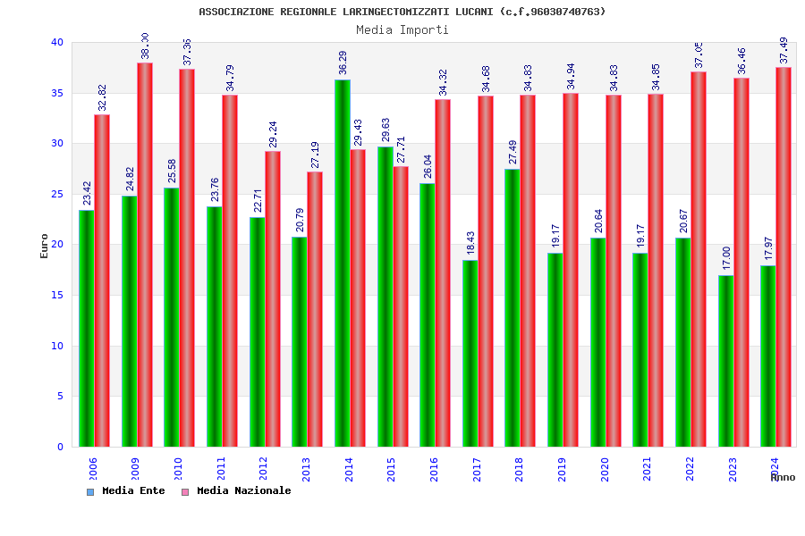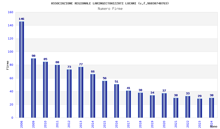 | Anno | Firme | Importi | Media | Naz. | Reg. | Prov. | Comu. |