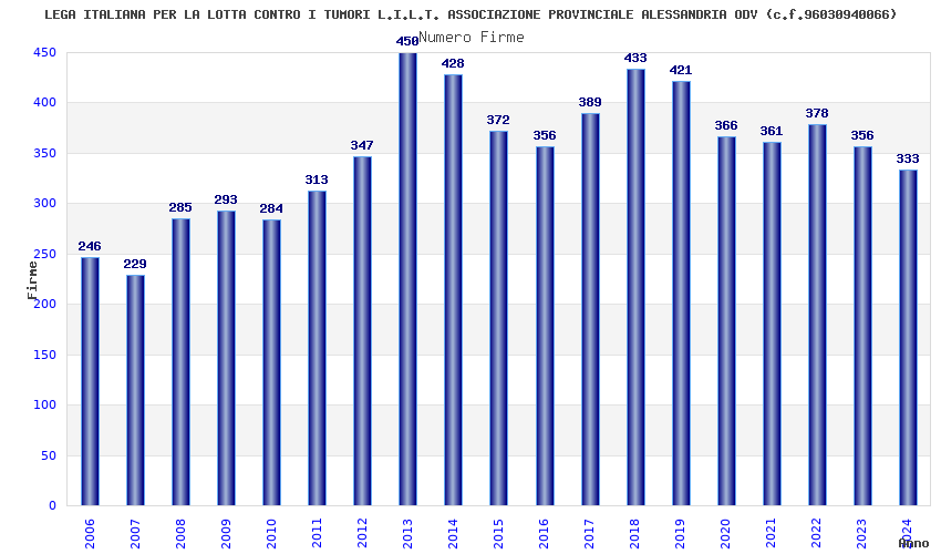 | 2013 | 450 | 11.651,77 | 25,89 | 3.386 | 235 | 20 | 6 |