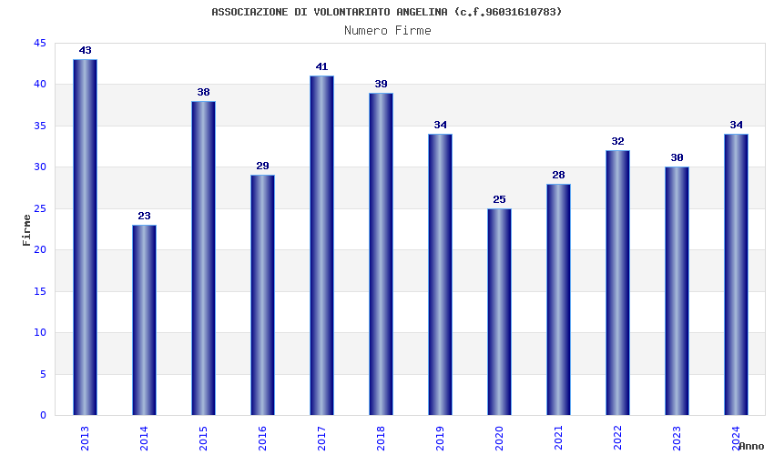 | Anno | Firme | Importi | Media | Naz. | Reg. | Prov. | Comu. |