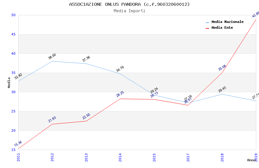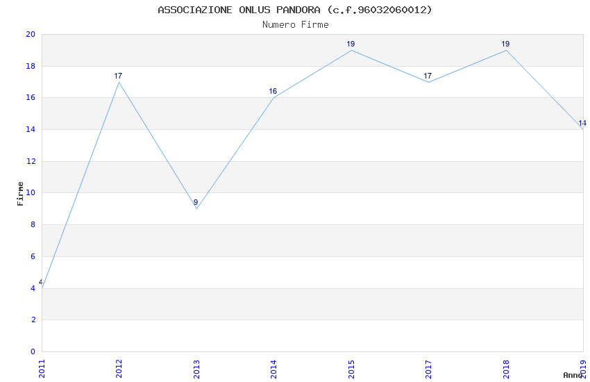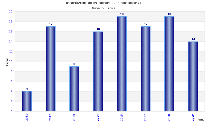 | Anno | Firme | Importi | Media | Naz. | Reg. | Prov. | Comu. |