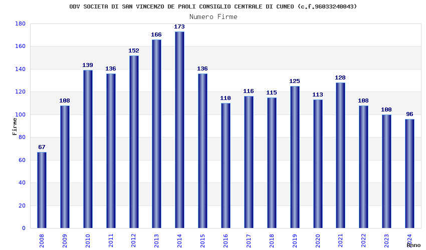 | Anno | Firme | Importi | Media | Naz. | Reg. | Prov. | Comu. |
