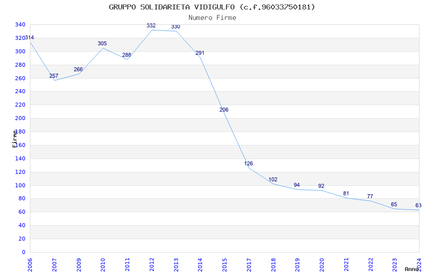 Anno Firme Importi Media Naz. Reg. Prov. Comu.