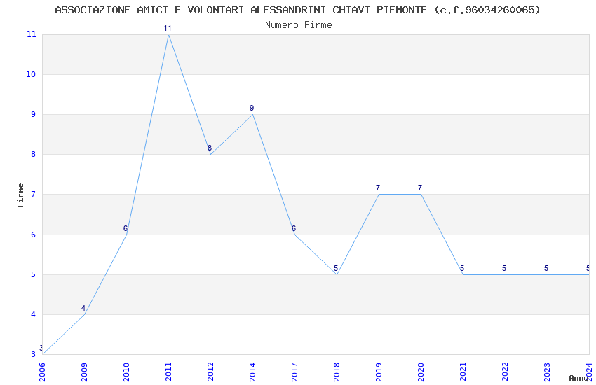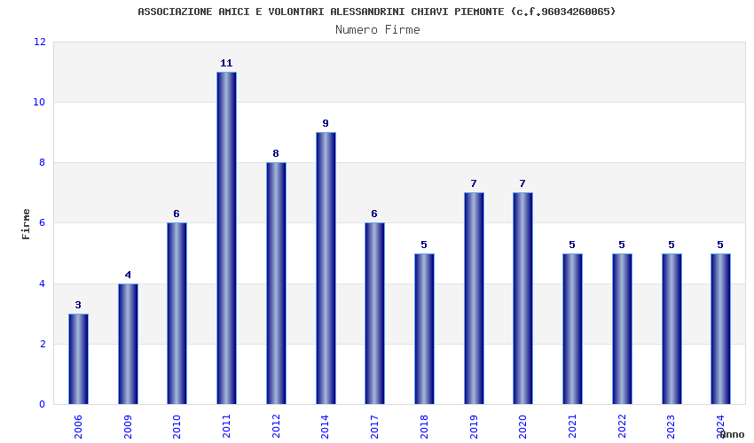 | Anno | Firme | Importi | Media | Naz. | Reg. | Prov. | Comu. |