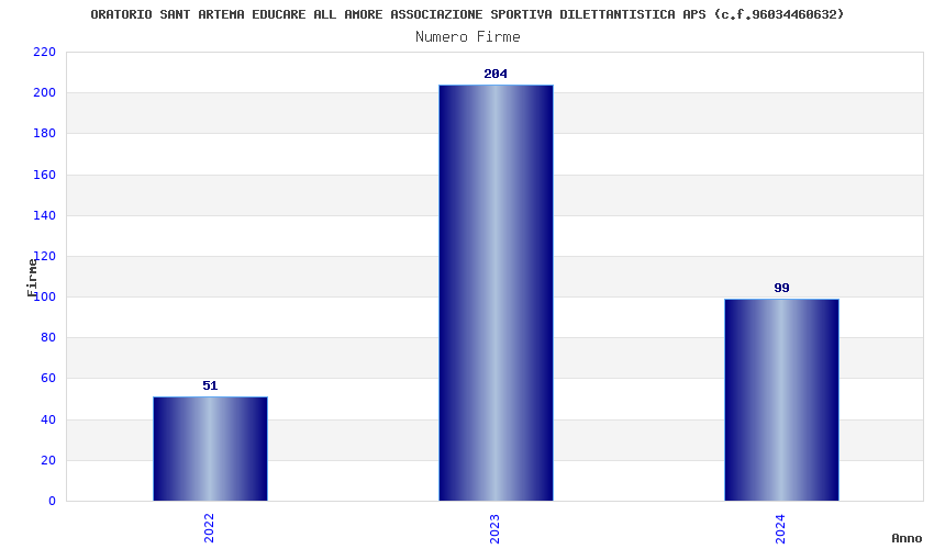 | Anno | Firme | Importi | Media | Naz. | Reg. | Prov. | Comu. |