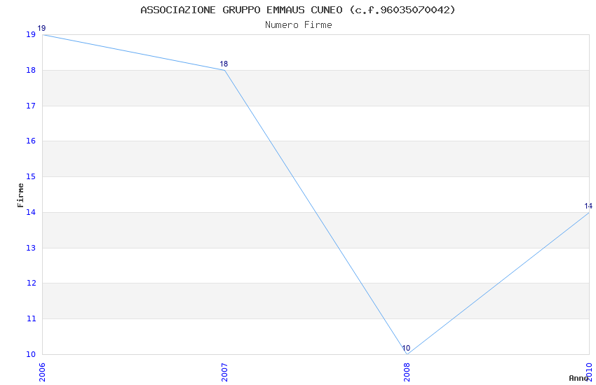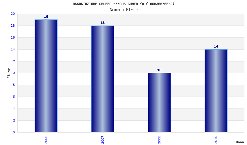 | Anno | Firme | Importi | Media | Naz. | Reg. | Prov. | Comu. |