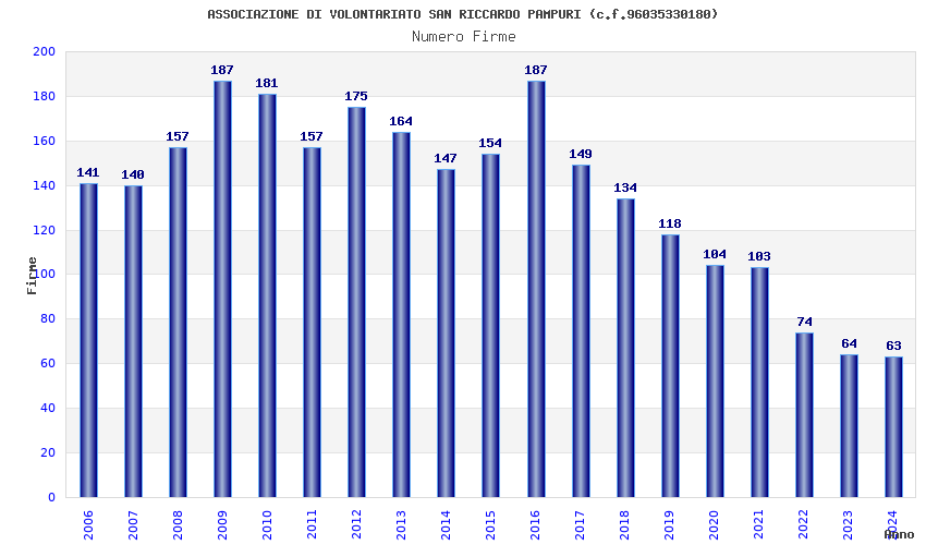 | Anno | Firme | Importi | Media | Naz. | Reg. | Prov. | Comu. |