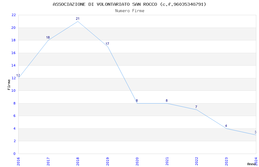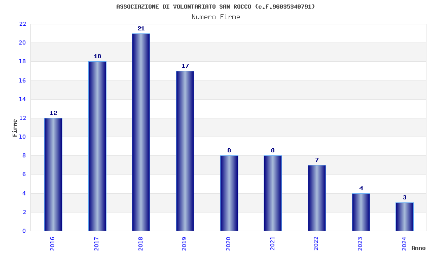 | Anno | Firme | Importi | Media | Naz. | Reg. | Prov. | Comu. |