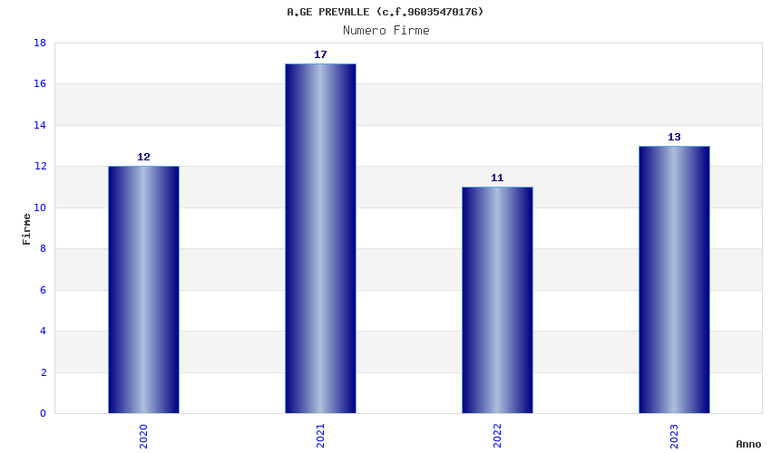 | Anno | Firme | Importi | Media | Naz. | Reg. | Prov. | Comu. |