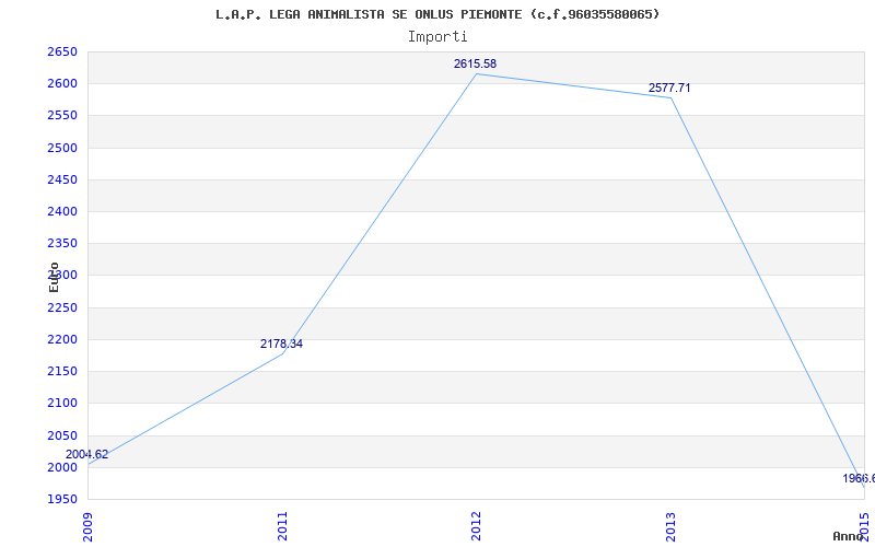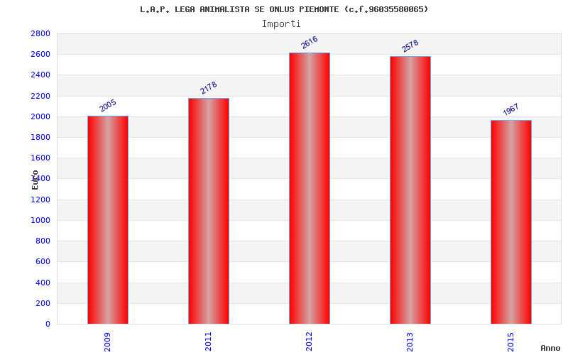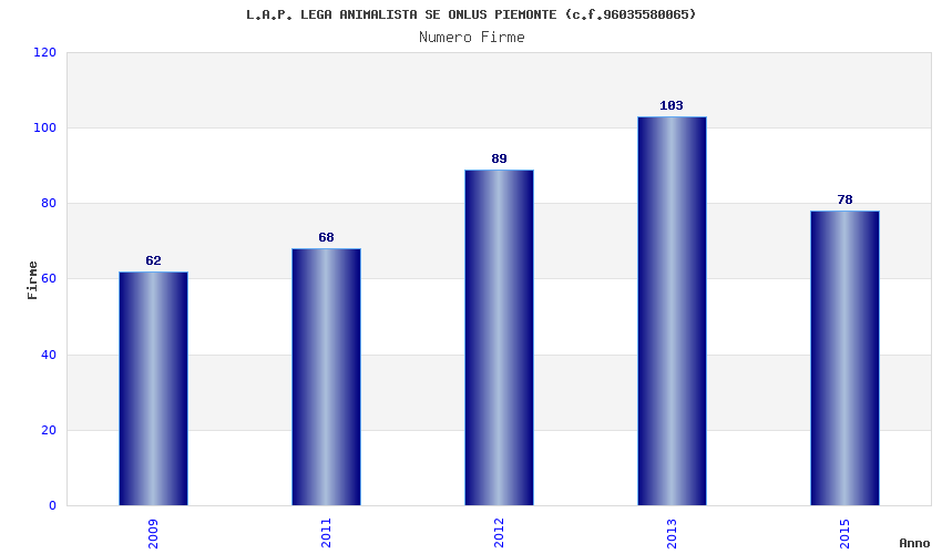 | Anno | Firme | Importi | Media | Naz. | Reg. | Prov. | Comu. |