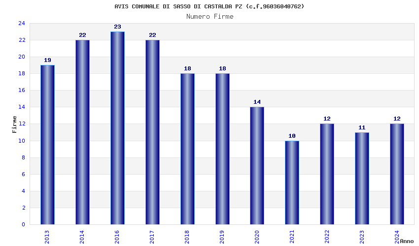 Anno Firme Importi Media Naz. Reg. Prov. Comu.