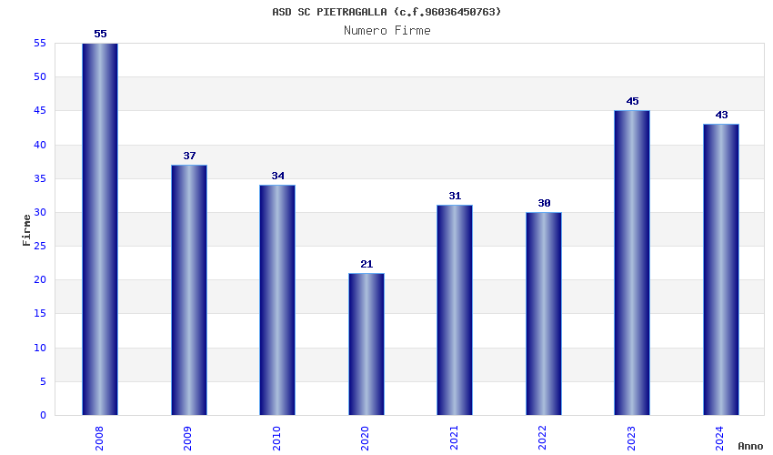 | Anno | Firme | Importi | Media | Naz. | Reg. | Prov. | Comu. |