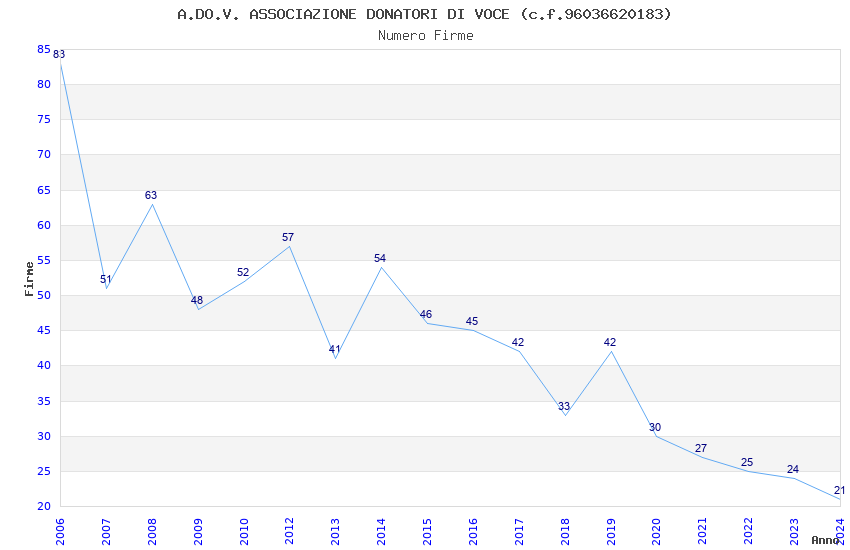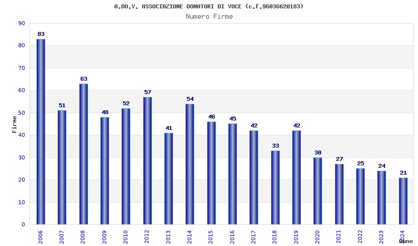 | Anno | Firme | Importi | Media | Naz. | Reg. | Prov. | Comu. |