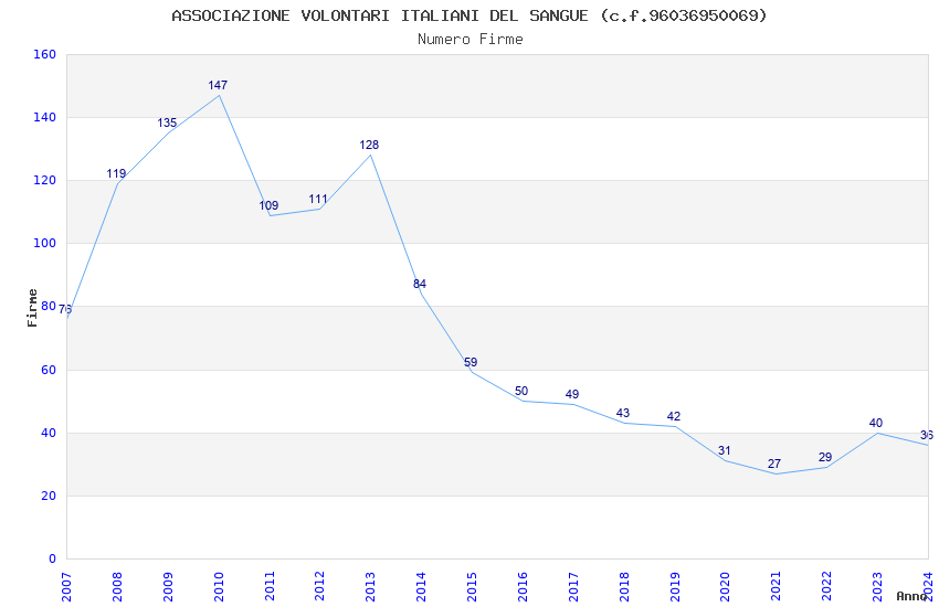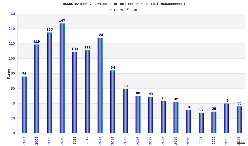 | Anno | Firme | Importi | Media | Naz. | Reg. | Prov. | Comu. |