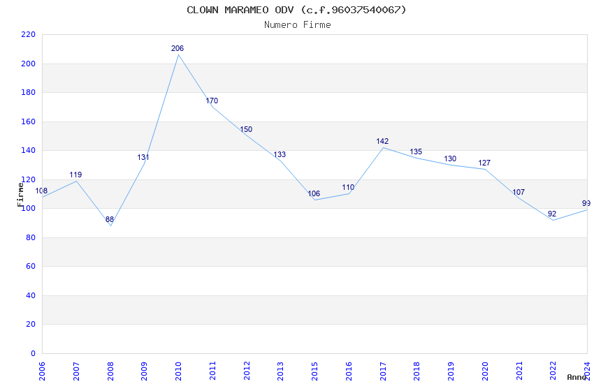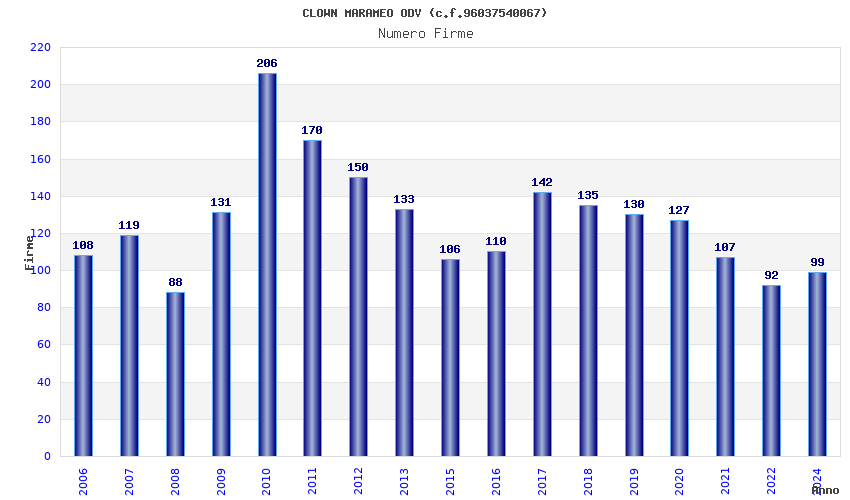 | Anno | Firme | Importi | Media | Naz. | Reg. | Prov. | Comu. |