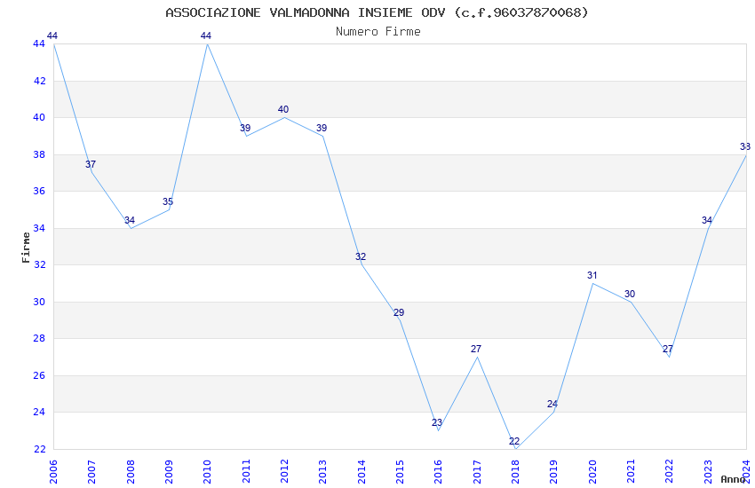 | 2010 | 44 | 723,20 | 16,44 | 26.943 | 2.389 | 221 | 63 |
