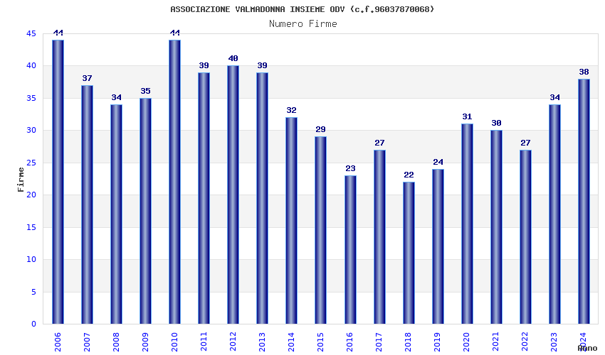 | Anno | Firme | Importi | Media | Naz. | Reg. | Prov. | Comu. |