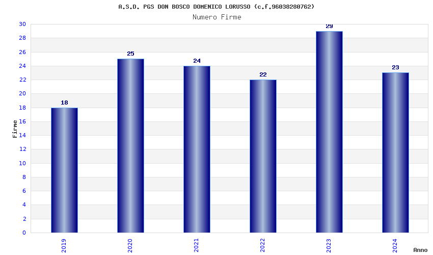 | Anno | Firme | Importi | Media | Naz. | Reg. | Prov. | Comu. |