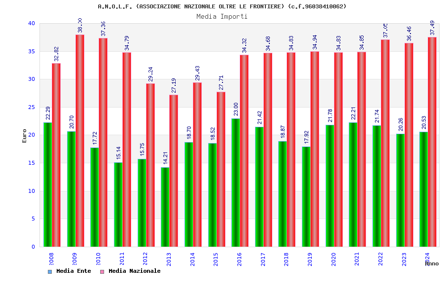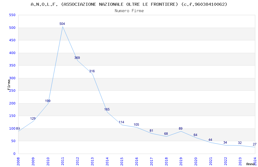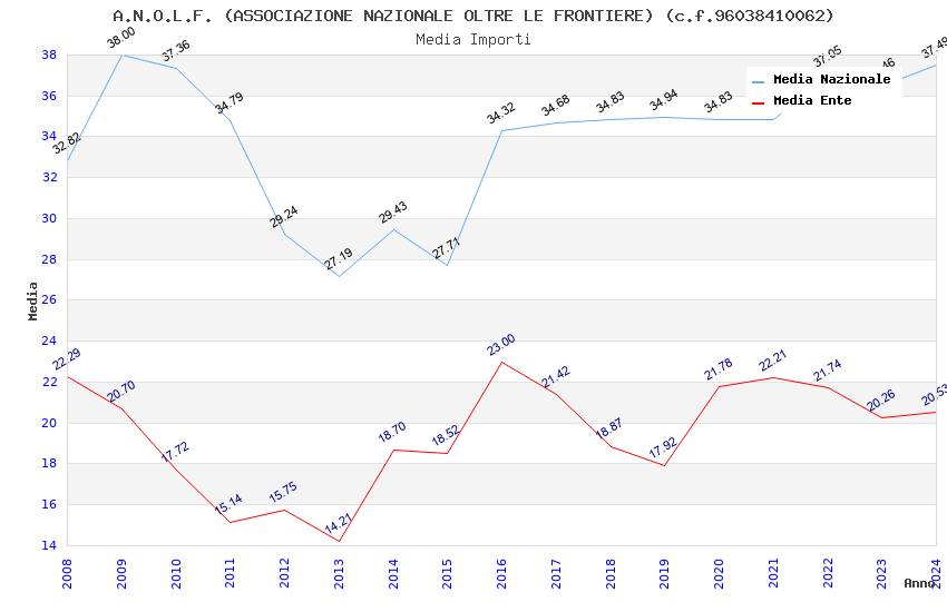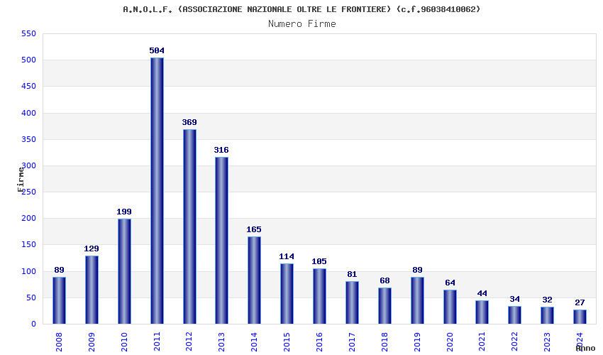 | Anno | Firme | Importi | Media | Naz. | Reg. | Prov. | Comu. |