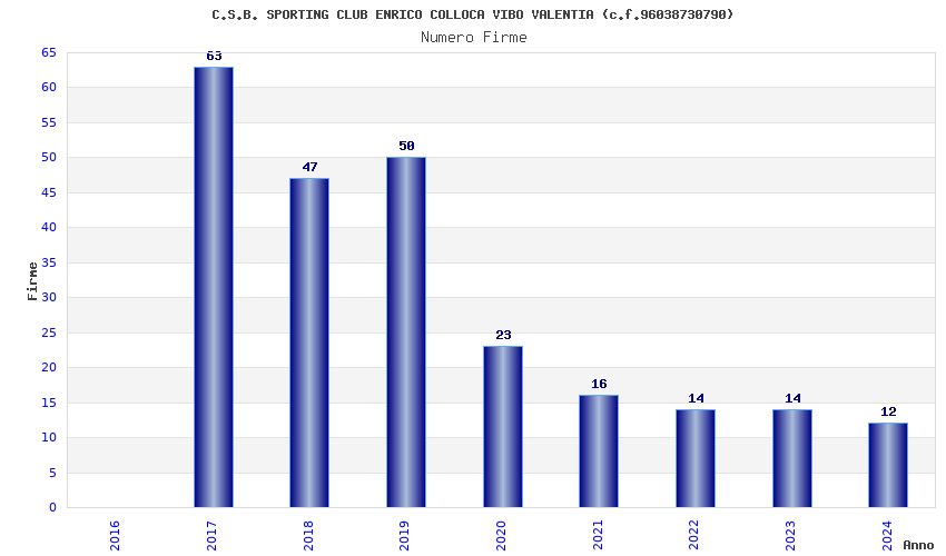 | Anno | Firme | Importi | Media | Naz. | Reg. | Prov. | Comu. |