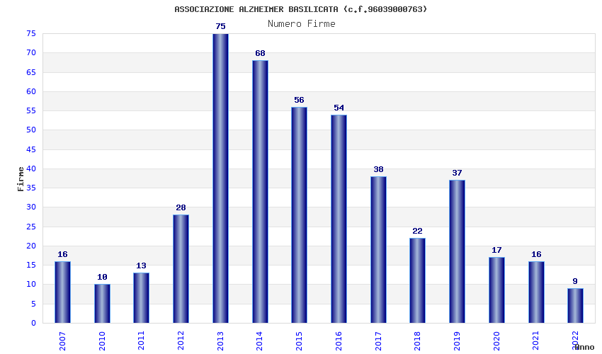 | Anno | Firme | Importi | Media | Naz. | Reg. | Prov. | Comu. |