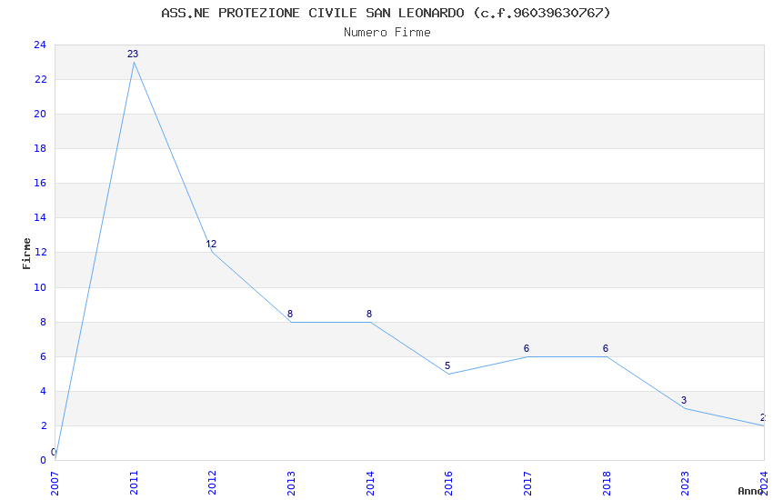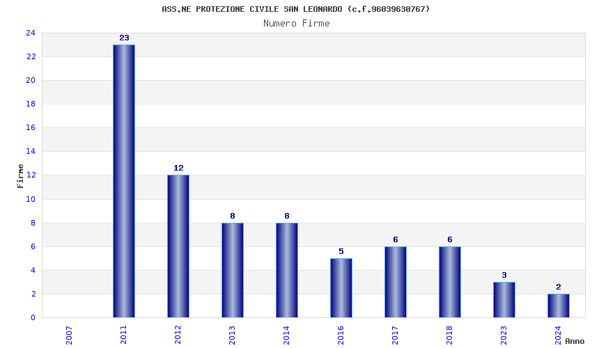 | Anno | Firme | Importi | Media | Naz. | Reg. | Prov. | Comu. |